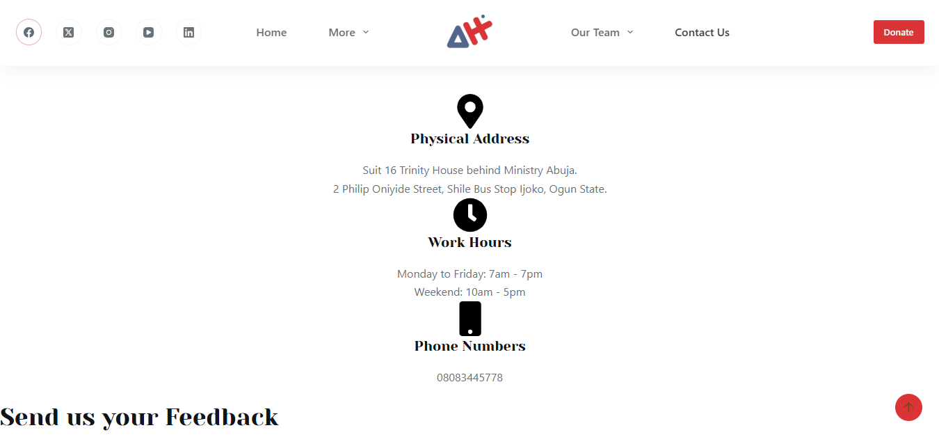 Understanding that many users access nonprofit platforms via mobile devices, the Adebiyi Habib Foundation website was optimized for seamless performance across smartphones, tablets, and desktops. The responsive design ensures smooth navigation through program information, donation options, and contact details without friction. This mobile-friendly approach allows users to engage with the Foundation’s mission, stay informed about initiatives, and take action from anywhere, improving overall accessibility and user experience.