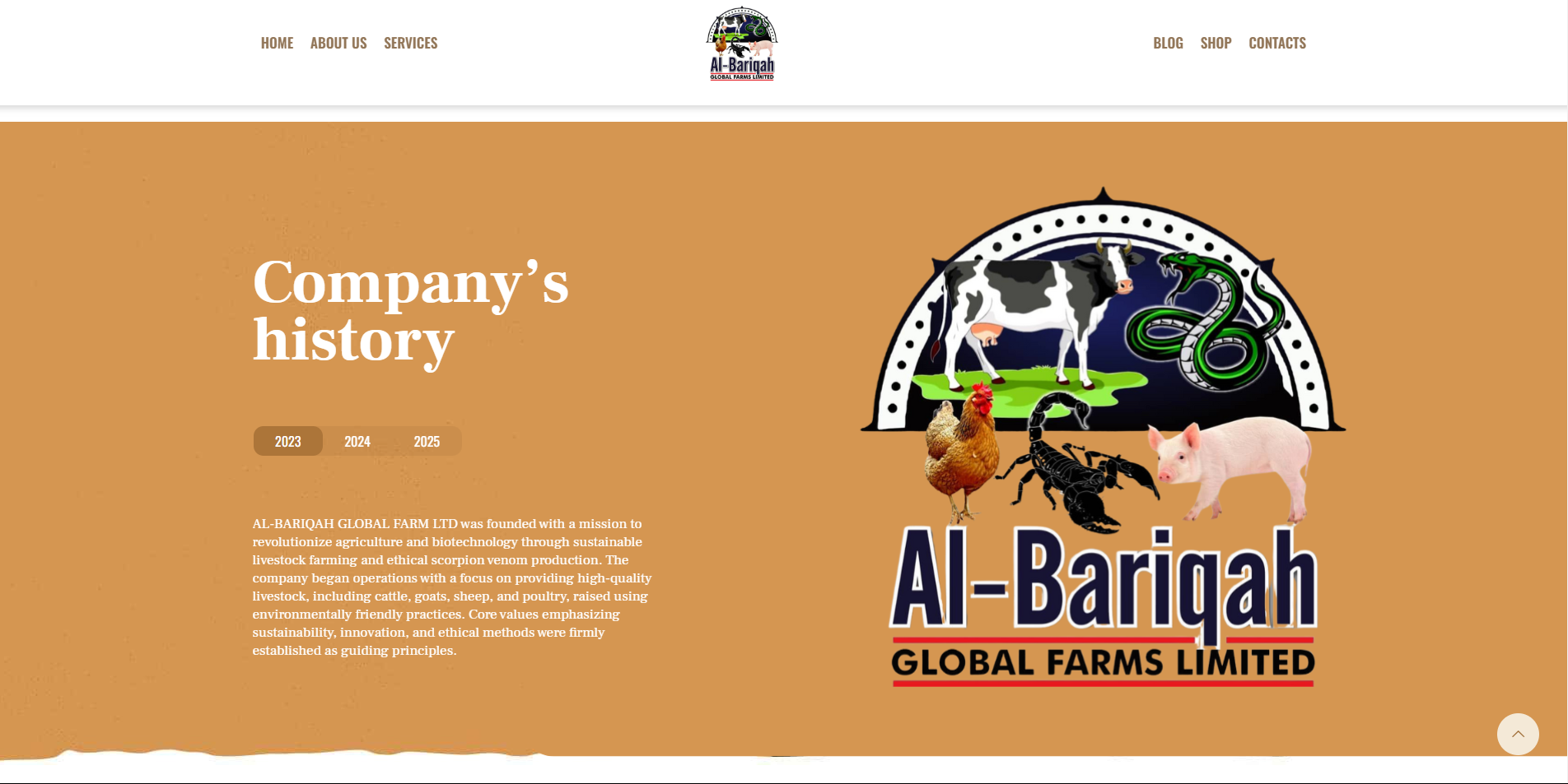 Al-Bariqah Global Farm Ltd sought to establish an online presence that effectively showcases their diverse agricultural services, including snake and scorpion venom production, livestock and poultry farming, and consultation services. The challenge was to design a website that highlights their innovative approach to agriculture and biotechnology while emphasizing their commitment to sustainability and quality. The site needed to appeal to a broad audience, including potential clients, partners, and individuals seeking consultation in agricultural practices.