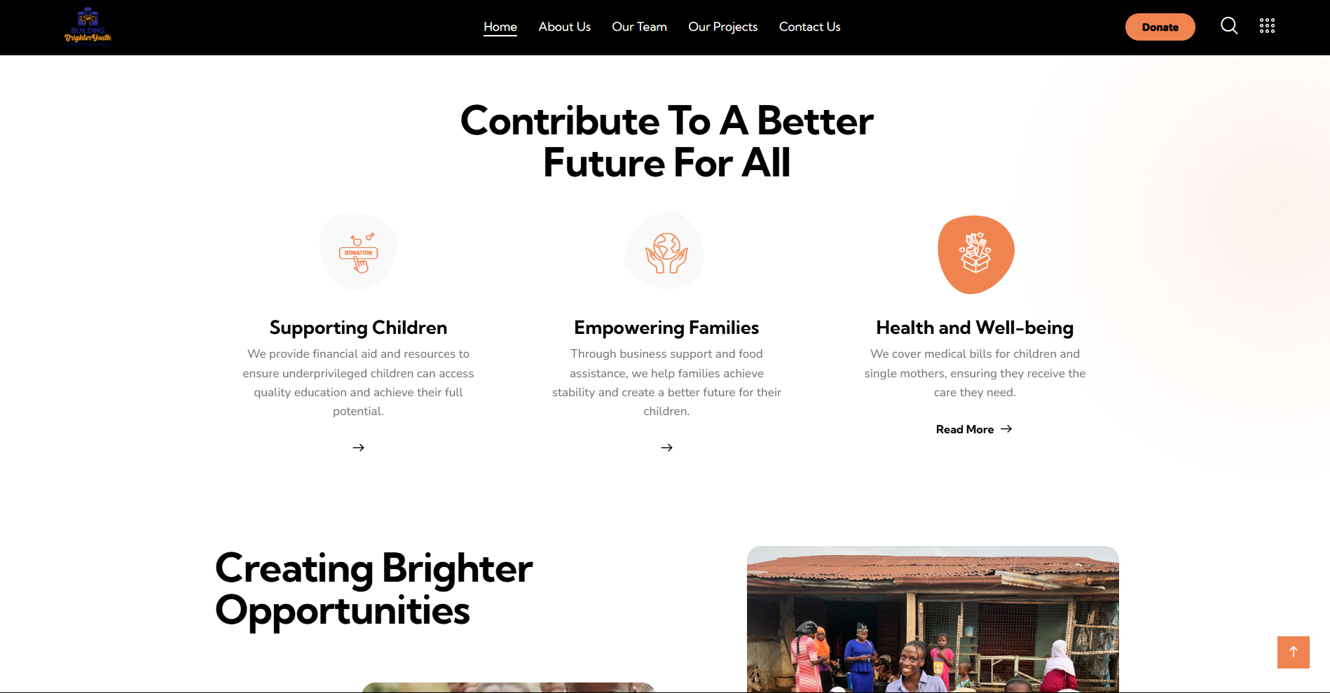 The website incorporates well-placed CTAs to guide visitors toward impactful actions, such as donating, volunteering, or applying for support. These CTAs use persuasive language and visually distinct elements to encourage interaction, making it easy for users to connect with the mission and contribute to the vision of a brighter future.