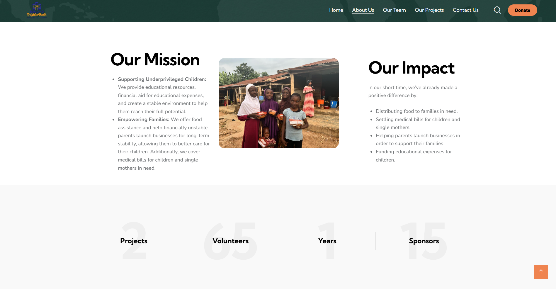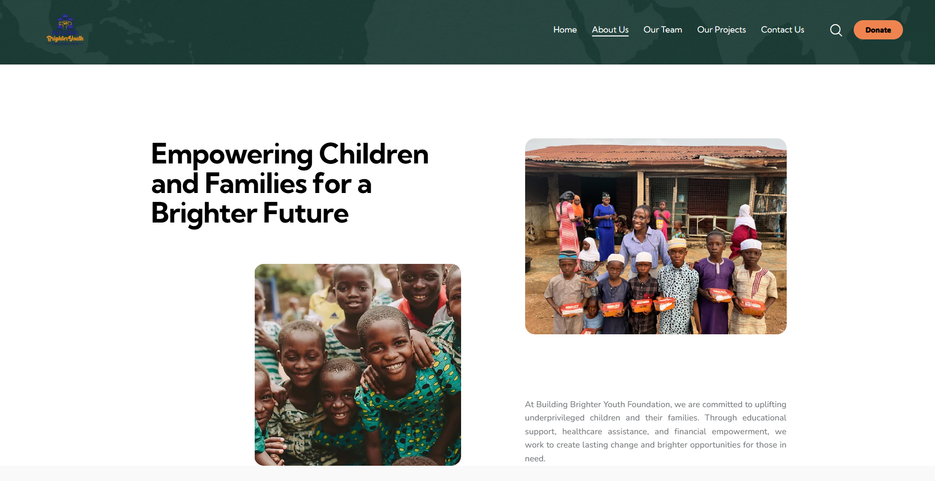 For Building Brighter Youth, we crafted a platform that combines visual storytelling with powerful functionality. Features include program overviews, testimonials from beneficiaries, and a secure donation system. By integrating these elements, the website serves as a hub for advocacy, resource sharing, and community building, empowering the NGO to expand its reach and deepen its impact.