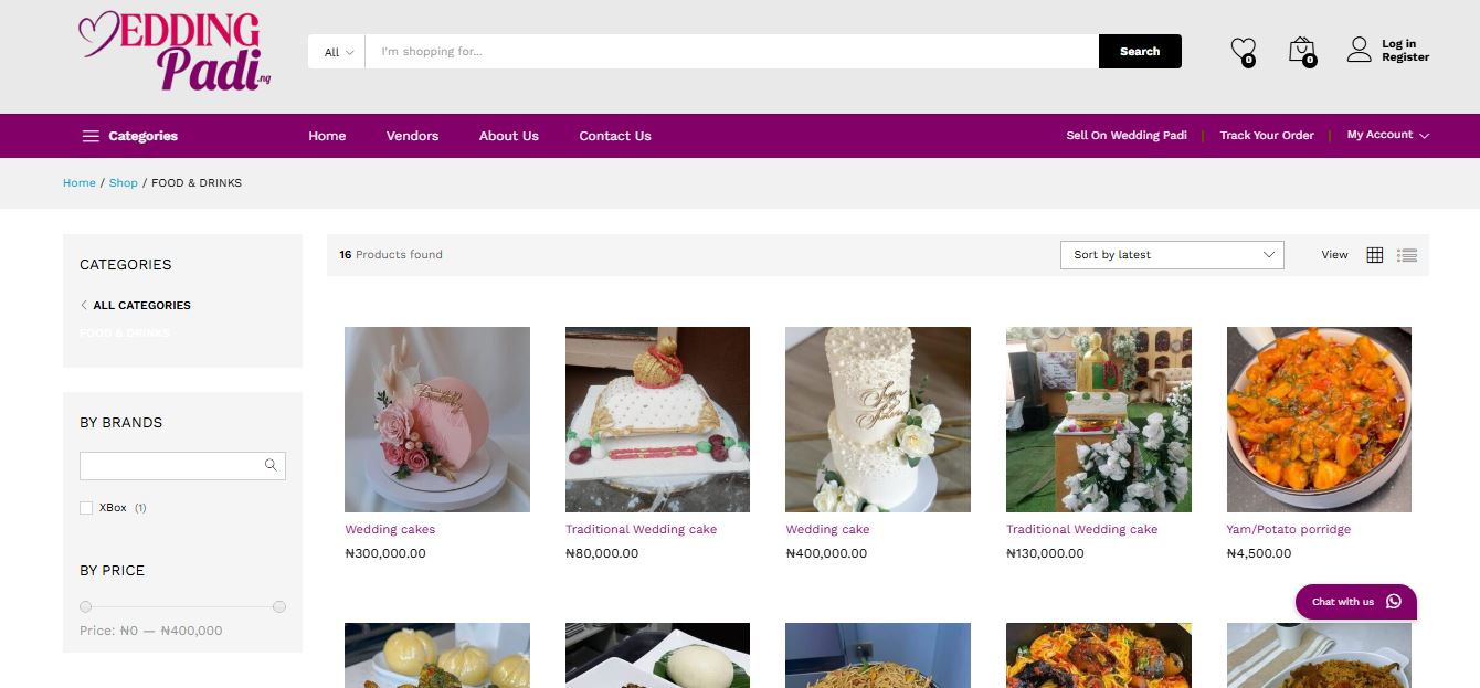 For My Wedding Padi, we developed an expansive wedding marketplace that encompasses every aspect of Nigerian wedding planning. The platform features 15+ distinct categories including traditional elements (Eru Iyawo/Brides List, Alaga services), modern essentials (Event Halls, Hotel Bookings, Hire a Planner), personalized touches (Graphics & Prints, Customize items), and comprehensive support services (Pre-marital Counselling, Skill Academy). The innovative pricing structure accommodates all budgets, from affordable customized handfans at ₦700 to premium event planning services at ₦2.5M. Advanced features include dynamic “Deals of the Day” with countdown timers, detailed product galleries showcasing items like Royal Crystal Tiaras and wedding cakes, and integrated vendor hiring services. The platform also includes unique cultural elements like traditional Alaga services and educational resources through their Skill Academy.\