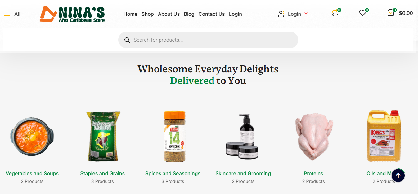 The Nina’s Afro Caribbean Store website was created to give a fresh online presence to a brand focused on delivering fresh groceries herbs organic produce food and drink items while also communicating its identity as a destination for wholesome everyday staples and flavorful ready to enjoy meals. The challenge was to design a platform that clearly presents both shop offerings and ready made dishes while making it easy for visitors to explore product categories understand what the brand sells and engage with the store’s services. The site needed to balance clean presentation of merchandise with a welcoming experience that reflects the vibrant food culture behind the brand and inspires customers to browse and shop with confidence.