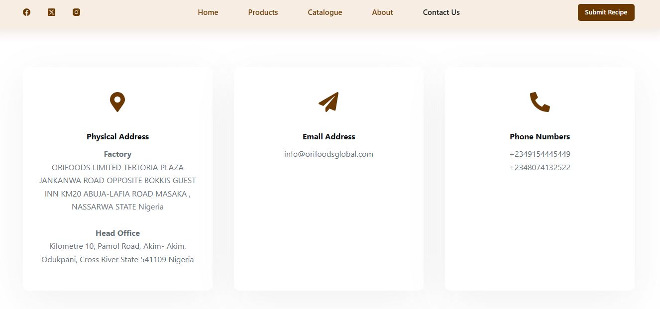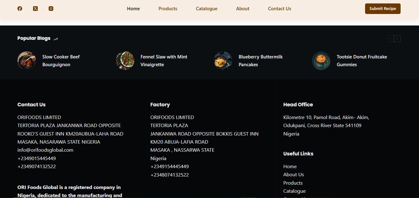 ORI Foods Global, a registered Nigerian company specializing in premium organic food manufacturing and distribution, needed to establish a compelling digital presence that would effectively communicate their mission of “cultivating a healthier and more vibrant community through natural, high-quality, nutritious food.” The challenge was to create a website that could showcase their commitment to 90% organic sourcing while appealing to both local and global markets seeking superior food options. The platform needed to emphasize their belief that dietary choices are essential for well-being and illness prevention, positioning ORI as the trusted choice for health-conscious consumers seeking exceptional food standards.