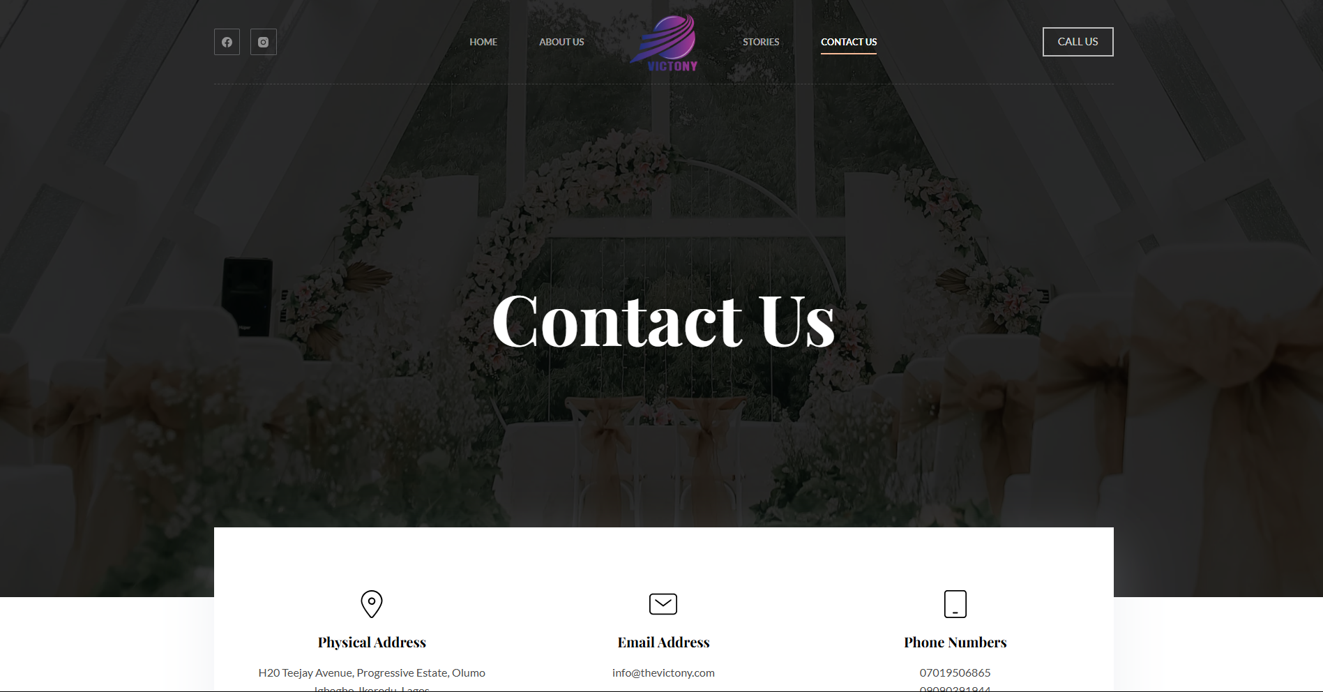 For Victony Event Planners, we developed a dynamic platform that integrates their comprehensive event services. Features include a detailed services section outlining offerings such as event planning and management, event décor and props, wedding and engagement essentials, and gifts and souvenirs. A photo gallery showcases their past projects, providing visual evidence of their expertise and creativity. The website also highlights client stories and testimonials, building credibility and trust with potential clients. An easy-to-use contact form and prominently displayed contact information ensure that visitors can effortlessly reach out to discuss their event needs.